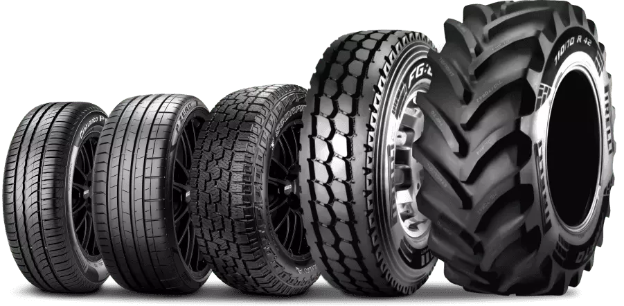 Toda a linha de Pneus Pirelli: Passeio, SUV, Pick-Up-, Van, Caminhão, Ônibus, OTR e Agrícola.
